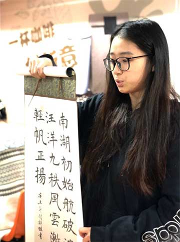 付梓淇同学带来的楷书作品以建党一百周年为背景。楷书作为书法字体中的一种,有着笔画工整,字体方正的特点,用于建党百年主题上最为合适,不仅能起到美观好看的作用,相较于其他字体看起来也更加严肃,一笔一划颇有风采。