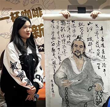 李佳艺同学的作品以零丁洋为创作背景,这位同学十分敬佩文天祥那面对元朝高官诱惑仍誓死不降的态度,或许在有些人眼中这是一种不识时务的作为,可他的高风亮节值得后人去赞扬。
