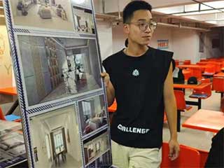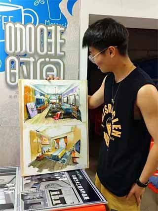 王颢同学带来的作品是室内效果图设计,以浅色调为主,造型的简约彰显了时尚大气,迎合卧室空间落地窗的建筑形式,设计上他有着自己独到的见解。“我想要一间卧室,有大大的落地窗,阳光洒在床上,也温暖了我的被子……不知道会有多少人也是这样的想法,落地窗不仅仅是出现在客厅和阳台,卧室的落地窗设计逐渐受到人们的喜爱。清晨打开窗帘看到大自然,傍晚享受星空,感受自然的魅力,体验被大自然包围的感觉”。