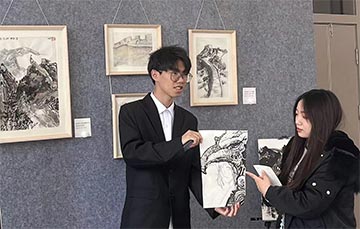活动开场首先由美教系2022级美教书画班王海欣带来她的国画作品,她利用工笔形式进行创作,画面中花朵盛开绽放,寓意平安幸福、和谐美好。