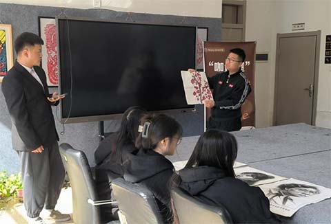 ▲美术教育系学生郭宏琪展示他的作品《梅花画》