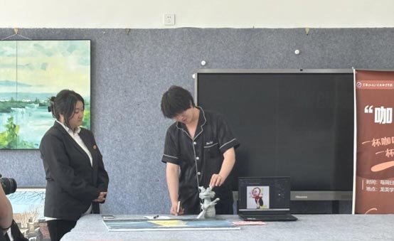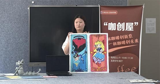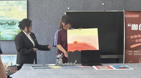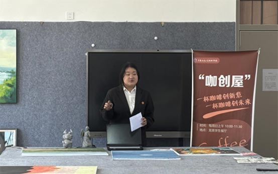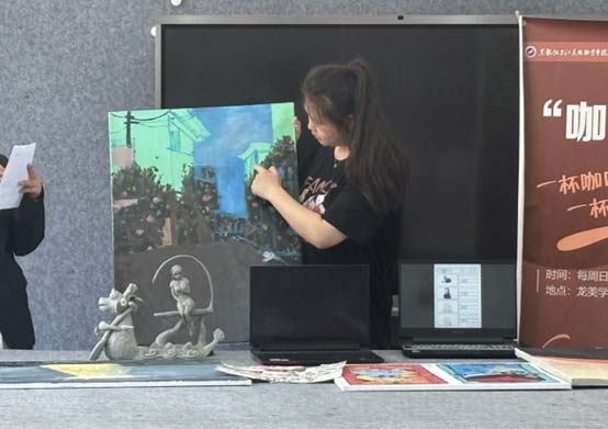 夏日的阳光犹如艺术家的画笔,轻柔地在蔚蓝的天空和翠绿的大地间舞动,绘出一幅幅充满活力与色彩的画卷。在这个充满生机的季节里,由黑龙江三江美术职业学院影视动画系承办的第五十三期“咖创屋”活动于2024年6月16日在龙美书院一楼举办,来自不同系院的20余名同学参加并分享了自己的作品。“咖创屋”作为校园品牌文化活动之一,不仅是一个展示学生创意与才华的舞台,更是促进学生们专业学习延伸与拓展的重要平台。