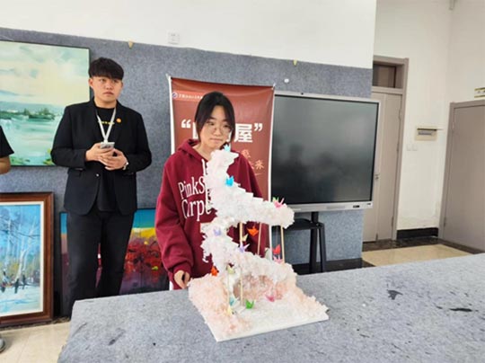 活动期间,数传系、动漫系、美教系同学也相继进行了作品展示,这里展现的不仅仅是单个元素的堆砌,更是一个完整的故事或理念的呈现。学生能够将不同的元素和细节有机地融合在一起,形成一个和谐统一的整体,使作品在展现时更具完整性和说服力。活动中更体现了学生的创新精神。他们不满足于传统的展现方式,而是尝试新的材料、技术和手法,为作品带来独特的视觉效果和艺术魅力。通过有趣的互评环节,学生让观众成为作品的一部分,与作品进行深入的交流和互动。这种参与不仅增强了观众的体验感,也加深了对作品的理解和记忆。