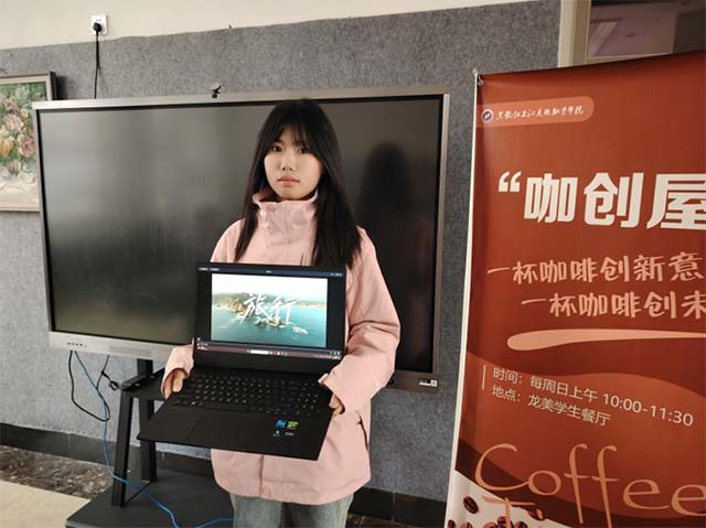 随后是23级全媒体的曹红薇带来的视频作品《旅行》,为大家呈现了一场独特而精彩的视觉之旅。作品以“旅行”为核心主题,深入挖掘了旅行的意义和价值。它不仅仅是对不同地点的游览,更是一次心灵的探索和成长。通过镜头的捕捉,曹红薇带领观众领略各地的自然风光、人文景观和风土人情,激发人们对未知世界的好奇与向往。视频中充满了丰富多样的场景,有壮丽的山脉,其雄伟的轮廓在阳光下熠熠生辉,给人以震撼之感;有宁静的湖泊,如镜子般倒映着天空和周围的景色,营造出一种静谧的氛围;每一个画面都经过精心挑选和剪辑,展现出独特的美感。剪辑手法上,曹红薇展现出了高超的技巧和创意。镜头的切换流畅自然,从一个场景过渡到另一个场景毫无突兀感。音乐和音效的选择也为作品增色不少,欢快的旋律在旅行的过程中响起,让人心情愉悦,充满期待;自然的音效风声、水声和鸟鸣声,让观众仿佛身临其境,增强了视频的真实感和沉浸感。