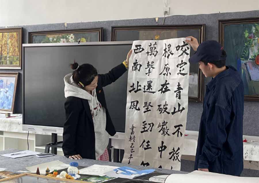 书法艺术在美术教育系达兆通笔下展现出传统与创新的双重魅力。一幅以清代郑燮《竹石》为内容的书法作品引发大家关注。字体为工整端庄,笔力遒劲,结构严谨,尽显书写者深厚功底。诗句“咬定青山不放松,立根原在破岩中。千磨万击还坚劲,任尔东西南北风”,以竹喻人,描绘竹子扎根于破岩之间,历经无数磨难仍坚韧不拔,无论何种风雨都无法动摇其信念。书法作品通过稳健的笔触,将这种刚劲不屈的精神融入每一笔画,字形挺拔有力,仿佛能让人感受到竹子在风雨中屹立不倒的姿态。此作品不仅展现了书法艺术之美,更借经典诗词传递出坚韧、执着的精神力量。在当今时代,这种面对困境不屈不挠的态度尤为珍贵,激励大家在生活中坚守信念,勇毅前行。作品将艺术与文化内涵完美融合,既是对传统诗词的生动演绎,也是对中华精神的有力弘扬。