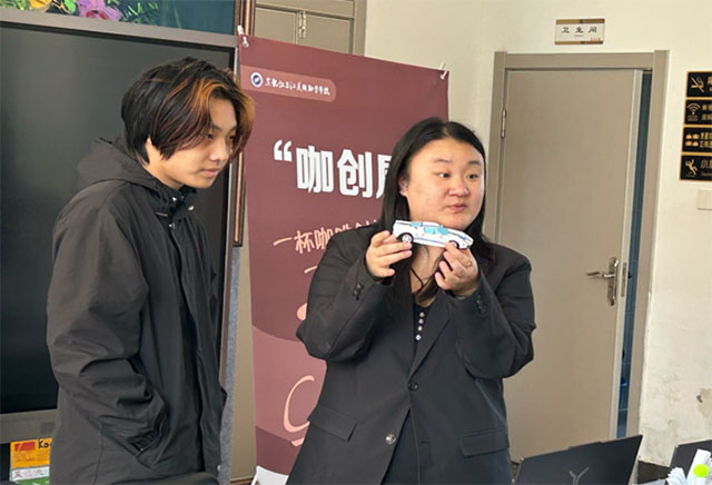 咖创屋活动的个人作品展示环节结束后,同学们随即转入热烈的交流点评环节。每件作品的创意巧思与精湛技艺皆获大家交口称赞。现场氛围热烈非凡,同学们围绕心仪之作展开热烈探讨,毫无保留地分享内心感受与独到见解。