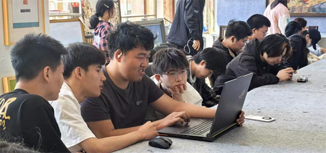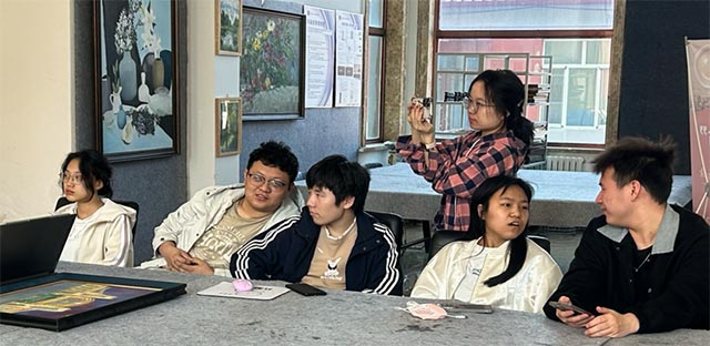 美教、数传、动漫、环艺等不同专业的同学携各自专业的独特思维在此交汇,碰撞出绚烂的灵感火花。交流中,大家秉持谦逊态度,积极汲取他人长处、弥补自身不足。这一过程,不仅增进了同学间的情谊,更如助燃剂般让艺术创作的热情熊熊燃烧、愈燃愈烈。