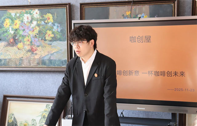 活动最后,由设计与科技融合学院王一老师进行总结。他说道:“咖创屋就像一座创意桥梁,连接起不同学科、不同风格的艺术表达,每一件作品都饱含着同学们的匠心与思考,让人倍感惊喜!本次活动的作品类型丰富多元,既有室内设计的实践成果,又有绘画创作的情感表达;既有数字动画的热血呈现,又有传统书法的传承创新。大家不仅熟练运用了各类专业工具与技法,更在作品中注入了对生活的观察、对美学的探索和对未来的期许。希望大家继续保持这份创作热情,在跨界融合中突破自我,在实践探索中沉淀成长,创作出更多有温度、有质感的优秀作品!”