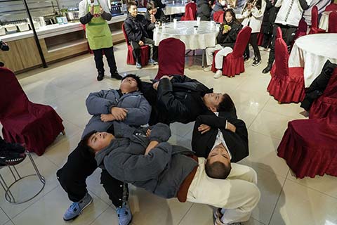互动游戏环节紧密围绕自信主题,李老师组织在场师生进行参与。根据活动规则,首先将四把椅子以正方形四角的位置摆放整齐,椅子的距离根据情况调整;要求每组的四个人分别坐在椅子上;每个人都顺时针倒向自己的队友,然后将头枕在队友腿部的位置;此时,因为有椅子支撑,所以大家都可以保持姿势不变,但是真正的游戏比赛才刚刚开始;游戏要求是要将参与者背后的椅子撤走,而同时所有人还必须保持原来的动作不变,这考量的是自信与合作。