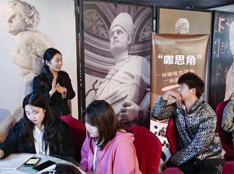 2023年3月24日, 黑龙江三江美术职业学院第24期“咖思角”活动在龙美餐厅圆满结束。杨楠作为座谈教师,董陆飞、陈思、陈静老师作为嘉宾出席了活动,各系部16名学生参加了活动。