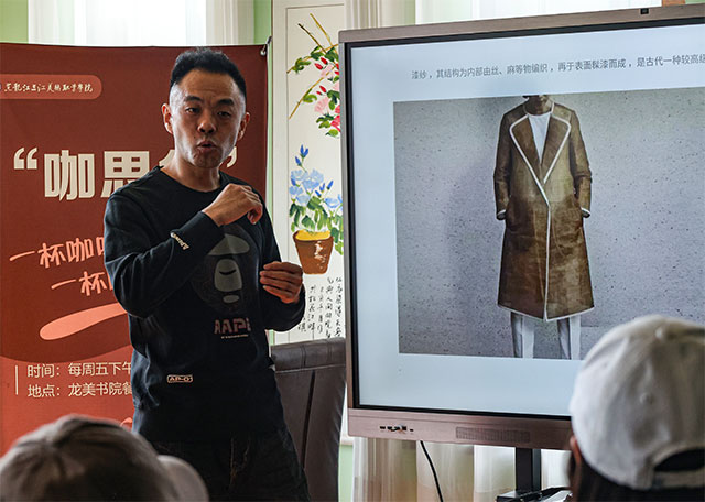 3月28日,三江美院第六十九期咖思角活动在龙美稚院二楼如期举行。本期咖思角活动邀请到漆画专家曲健副教授,为师生们带来了一场主题为《漆韵千年——探寻中华漆文化深邃之美》的讲座,引领同学们沉浸式领略中华漆文化的深邃之美。