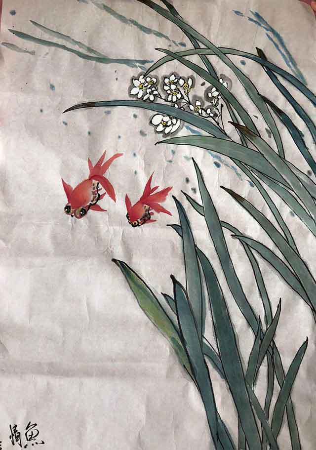 一周后,我们在姚教授那里接着学习国画。每天都有必备的理论讲解和实践操作环节。我们学会了画猴子、兔子、金鱼、虾、鲤鱼,还学习了梅兰竹菊四君子的画法,分析四君子的特点并教我们怎么画好四君子。我们每一天收获都很多、很充实。最后一天我们去四丰山写生,画树木。写生的每一天都很开心。在江边我们遇到一个小美女也对画画很感兴趣,赵爽老师让我教小美女画小白兔,感谢赵老师给我这次实战机会,还有很多不足的地方,回学校在教学实践课堂中我也会注意并改正。