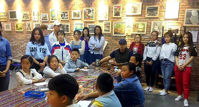 有3个双休日,我们又去翰林书画院的杜平教授那里学习,杜教授带领我们一起做泥塑浮雕,在杜教授那里,我们学到了“在玩中学”的教育理念。杜教授教我们怎样能把石头做成一幅画。怎样用黏土装饰荷花。我们在杜教授那里学习,每一天都很充实。和小朋友在一起学习,了解孩子们的兴趣与孩子们的生活。小朋友们的童真吸引了我,让我更有信心去教他们,与他们做朋友。和他们在一起每一天真的是很开心,也觉得自己很年轻。杜教授的教学理念很好,从故事导入,再到与学生一起画画,再到最后吸引学生画画的做法非常得我们学习。让我们对少年儿童有了一些了解,也让我们学到了如何吸引孩子们注意力,激发他们的学习积极性,从中也学习到了许多新道理。