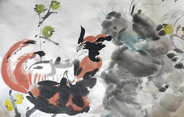 游学第一天,刚走进姚宝山教授的教室,就能感觉到迎面而来的水墨的气息。出于对国画的好奇和喜爱,我认真的对待每一节课。姚教授的讲解很细致,往往轻易就能找到画中的关键。对于几乎没有接触过国画的我来说,姚教授细心的讲解和耐心的指导尤为重要。鼓励对于任何一个人来说都是必不可少的,我想,我能认真对待每一幅练习的画纸,应该离不开姚老师的鼓励吧。