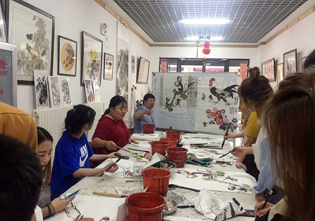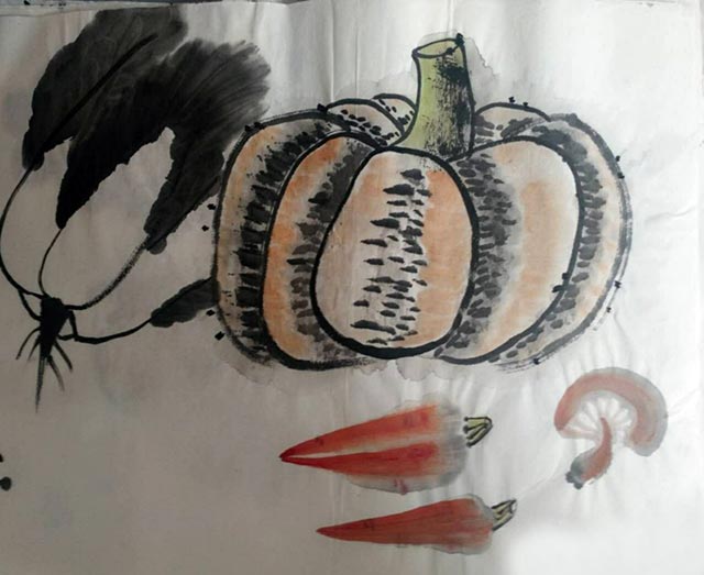 姚宝山教授画了几十年的国画,桃李满天下。寥寥几笔就可以展现出各式各样的风景:生动的猴子、毛茸茸的小鸡、生机勃勃的小野菊、一身傲骨的梅兰竹菊……短短的半个月,姚教授尽心尽力的教我们绘画,丝毫没有因为我们来学习的时间短就敷衍了事。