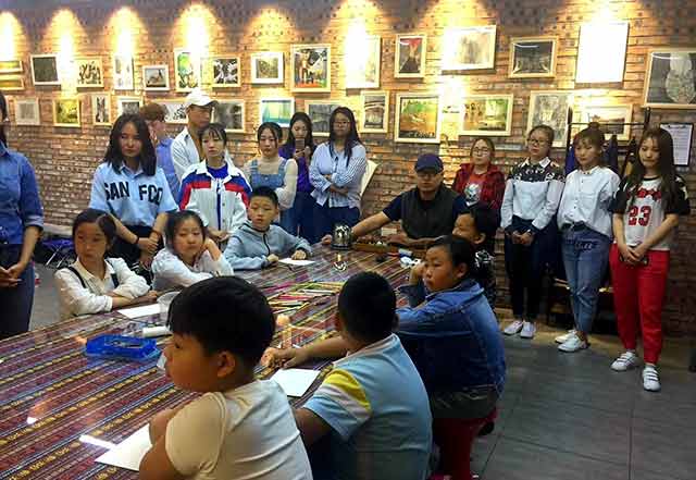 周遵岩教授其实很和蔼,我们并不是第一次接触。六大板块我们也研究过,直到再次观看周教授的课程我才发现,我以前研究的只是表面,并没有深入的理解。这次去周教授的工作室,他在交一些较大的孩子们写实,很多孩子的画并不标准,我的内心有很多疑问。周教授跟我们说“他们还小,现在只是简单的接触素描。孩子太早的学习反而会适得其反。在什么时候就要做什么事。”是啊,想想小时候自己为什么不喜欢画画?不就是因为画画一定要画的像?画的一样?周教授的课并没有要求孩子们具体要怎么画,也没用范画。但是每个孩子画出来的效果都非常不错。并且教授将画画剩下的色粉笔粉又让孩子们创作了一幅画,孩子们充分发挥了想象力。那个年龄的孩子们不受束缚,画的画充满了童真,孩子们又对画画充满了兴趣,相对于传统的绘画教学方式更能让孩子们接受。
