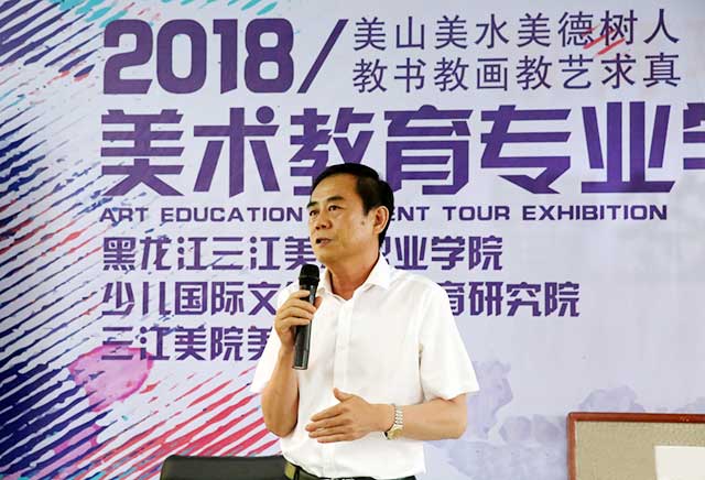 王英海院长说 : 三江美院少儿国际文化艺术教育研究院与美术教育系密切合作,组织美术教育专业大学生前往佳木斯市,开展了为期一个月、主题为“访名师,拜专家;走出校园,走向社会”的大型游学活动。在一个月的时间里,同学们分别来到我省著名国画家姚宝山教授开办的“玉山堂”,青年书法教育家、中国书法家协会会员陈绍禹教授开办的“聚贤书馆”,黑龙江省校外儿童美术教研基地创办人、青年少儿创意美术教育家周遵岩教授开办的“老猫画馆”,全国翰林少儿书画教育连锁机构创办人、青年少儿创想艺术教育家杜平教授开办的“翰林书画苑连锁总部”等四家教育机构开展了游学活动。以上四位老师都是上世纪八十年代或九十年代初三江美院的毕业生,现在他们都学有所长,事业有成,自成一家或自成一派。这次三江美院少儿国际教育研究院和美术教育系安排在校大学生到本院校友创办的教学实体去开展游学活动,对于提高在校生的专业素养、职业精神和综合素质都具有非常重要的意义。实践证明,这种“游学”教学方式取得了非常丰硕的教学成果。今天在这里展出的是同学们在游学期间拜师学艺、精心创作的美术和书法等艺术作品。这些作品题材丰富、主题鲜明、笔触细腻、风格清新、小有成就。这些作品虽然还不是很成熟,功底、技法也还有很多欠缺,但从中可以看到同学们的创新性思维和不拘一格的创作手法,表现出十分巨大的发展潜力。每幅作品都凝聚了同学们和指导教师的一份心血,都是同学们废寝忘食、艰苦创作得来的成果,来之不易,可喜可贺!参加今天游学作品展的同学都是我院美术教育专业的在校大学生,你们的游学成果,为我院和美术教育系增了光,添了彩;我要代表学院感谢你们。为什么这么说呢?大家知道,三江美院从1987年开始开办师资美术专业,专门为中小学培养美术书法教师。由于用人需求量越来越大,后来学院成立了美术教育系,由我亲自担任系主任。美术教育专业是我院得以起家的专业,也是我院的招牌专业,毕业生就业情况一直十分看好。美术教育专业创办至今,已有30届毕业生,他们遍布祖国各地。一些毕业生已成为全国少儿美术教育的领军人物,众多毕业生成为省市少儿美术教育的中坚力量,他们在少儿文化与美术、外语与美术、科学与美术方面不断拼搏、探索、求实、创新,为培养少儿文化艺术人才做出了很大贡献,深得社会各界的好评。