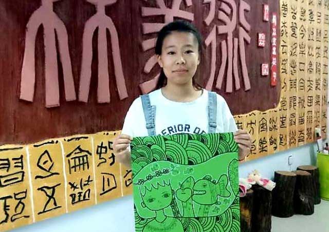 第二个去的是杜平老师的翰林书画院。杜老师领我们参观了翰林书画院,虽然不是非常大,但可以肯定地说这两层楼里面装的都是知识。我们今后都是为人师表,所以要跟杜教授认真学习教学经验、教学方法。杜教授为我们提供用具,让我们画画,他并没有把我们当大学生来看,他把我们当成他教的小孩子们,让我们画累了可以出去放松一下,去透透气。在周六、周日时,杜教授该给小朋友们上课了,他让我们和小朋友们一起听课,听课的同时也学习他的教学经验。印象很深的一件事是有个小女孩要跟我交朋友,放学走时还不忘记跟我说“咱俩以后就是朋友了”,我说:“好,答应你。”