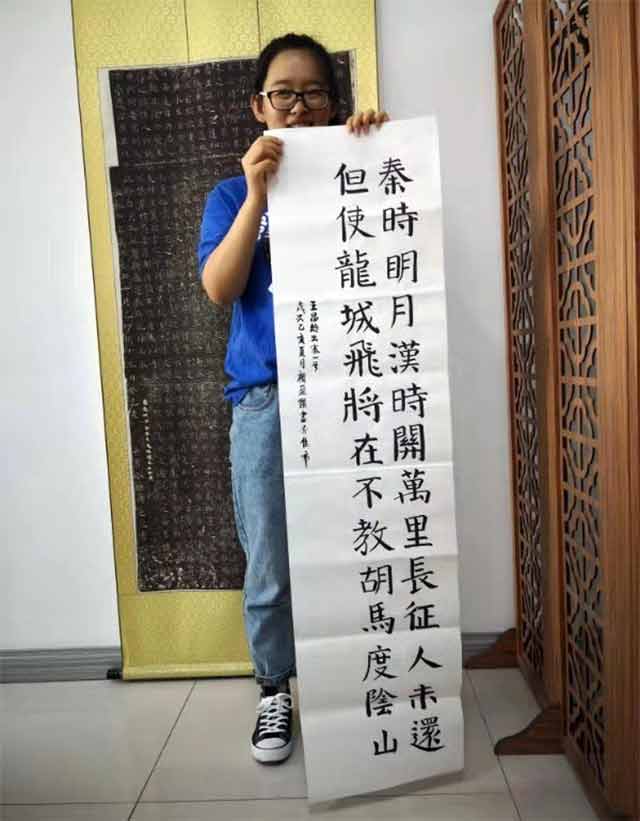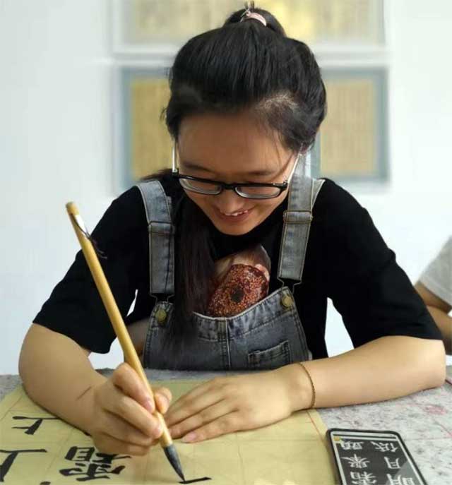 最后一个游学的地点是陈绍禹老师的承贤书馆。陈老师的书法真是达到了让人惊讶的程度。陈老师对我们的书法水平不一致并没有说什么,也没有放弃任何一个学生;陈老师用他的耐心与温柔,给我们写范字,耐心地讲解。老师会用古人的例子和句子为我们作解释。在陈老师写范字的时候,也会认真的讲运笔和笔划,不厌其烦地为你改正错误。在学习期间,陈老师还向我们介绍了如何挑选笔墨纸砚等等。在学习的最后,陈老师看到了我们比较成功的作品,老师的脸上露出了欣慰的笑容。虽然我们写得不是太好,但是与我们刚来时的写作形成了一个鲜明的对比。