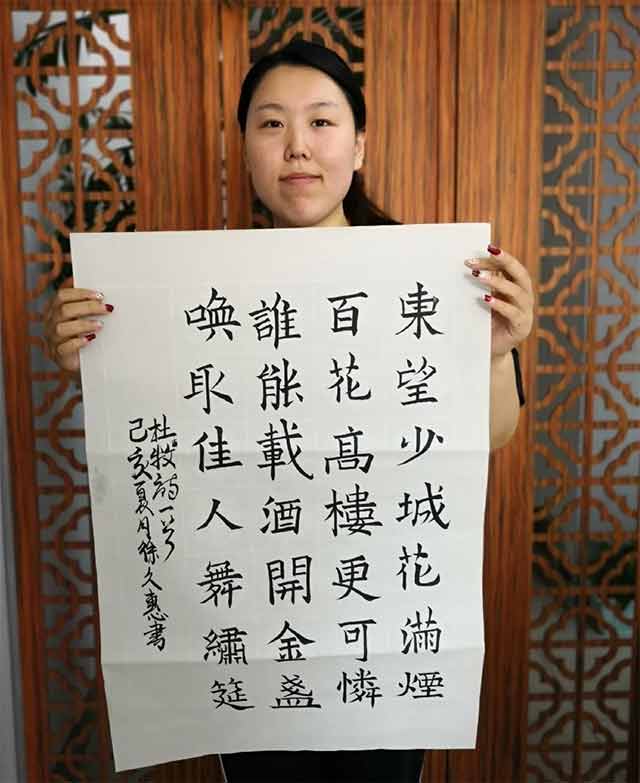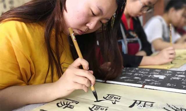 最后一位老师就是教我们书法的陈绍禹老师了。在来这里之前我对书法是一窍不通的,且毫无兴趣,但当我在陈老师这儿学习了几天之后我才发现,书法是如此的可爱而又迷人。刚开始我写的字真的很丑,但陈老师仍旧极具耐心,毫无苛责。他字如其人,刚劲有力、流畅而从容。字是凝练厚重的人,人亦是质朴纯良的字。陈老师对我们从来不说一句批评的话,他只会鼓励我们,激励我们;若有不足之处,便稍作指点。他不仅是一位老师,更像是一位随和的朋友,对我们做出细心的指导,这让我对书法爆发出极大的热情与兴趣。我们每一个人的字在这里练了一段时间之后,都脱胎换骨,取得了巨大的进步,这和陈老师的教育无疑有着极大的关系。