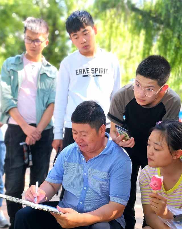 在姚宝山教授工作室学习的那段日子,从脑海中只有一张白纸,到有了框架结构。虽然只有短短的几天,但我的收获却是硕果累累。知道了如何去画,如何去写,如何在国画中寻找画眼;如何画山画树,如何写生,如何去体现树的质感,如何用皴法去体现;从单钩到双钩,从钩,皴,擦,染,点,到上色,到造型。短短几天学到的知识和本领似乎比在学校一年学到的还多,真的是好开心!这种获益匪浅的兴奋,想起来脸上就会不禁嘴角上扬。无论是老师的人品还是见识,都让我感触良多。若有机会,日后必定找姚老师再次好好学习一番。