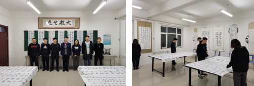 第五、加强书法工作室的文化建设,布置好书法作品,营造良好的学习书法的氛围,形成勤于习字的学风和竞争局面。我组织美教系多名学生组成书法兴趣小组,每周不定期召开学习书法讨论会,小组内成员参与积极度高,每天晚自习和周末都会来到工作室练字,同时他们也扩大了“书法朋友圈”,吸引了更多的学生学习书法,正是因为喜爱书法,他们立志要努力学习,升入本科院校书法专业,毕业后成为一名优秀的书法教育工作者。