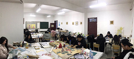 按历史的时间推移,唐代之前中国画并无明确分类。在唐代中期开始有了花鸟这一科目,但仍未明确分为人物、山水和花鸟。按照技法可将中国画分为写意和工笔。写意可细分为大写意和小写意,按照颜色可以分为白描、水墨 、青绿和浅绛。这为学生的学习提供着丰富选择基础,也更丰富了创意美术教学的内容,可以把国画和创意美术相互结合,让教学更有特色,突出三江美术学院的八大板块特色,还可以为专业群服务。并且也为龙美艺海轩做出贡献,可以使学生的作业变作品,作品变商品,实现创新创业回报。