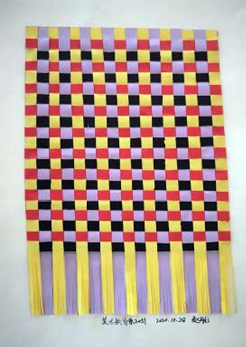 第二幅创作是,用紙线条的形式代替 非洲肯特布地毯的原材质,选用相同的编制手法,再加以一些规则的图案丰富其内容。(属于工艺品的雏形)