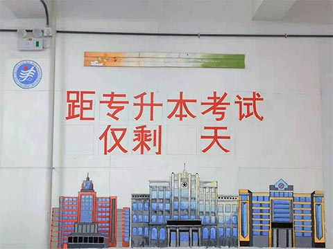 九月份第一周,安排了班级学生,在班级后的墙面上做了专升本倒计时的设计,用时两周,分组进行。一是,由于班级的同学都来自不同的校区,不同的专业,不同的班级,为了能够通过这项小活动,学生之间能够迅速熟悉,增强班级凝聚力。二是,由于我们班是具有升学任务的班级,倒计时的设计可以提高学生的紧张感,也有助于他们坚定信念。