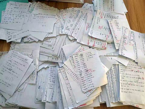 专升本入学以来英语考试百余次,这是部分学生考试的批改成果留图。 |