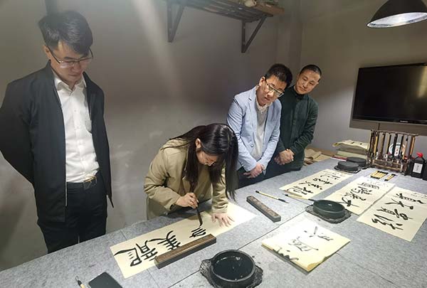 通过此次书法研学活动,三江美院美教系的教师们深受教育,使大家明白了一个道理:一位好的书法老师要备足功课,武装好自己;除了掌握技法外,更重要的是提高素养和内涵!书法是一门高深的艺术,要在书法教学过程中使学生学会欣赏美、享受美,用美的视觉看待身边的一切,用一支毛笔演绎精彩的人生;要继承和弘扬中华传统文化,做一名新时代合格的美育教师!