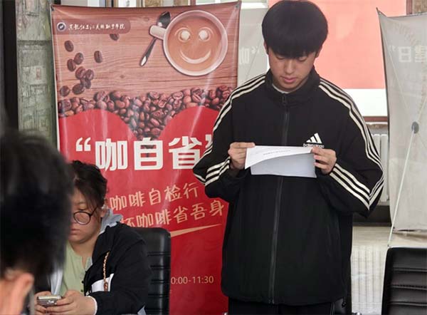 夏的调色盘藏进山间,七色的溢彩染遍了校园,在这个初夏的五月,黑龙江三江美术职业学院举办了第三十四期“咖自省”活动,本期“咖自省”活动由影视动画系主任赵云鹏老师主持,美术教育系党支部书记马兆玉作总结讲话。来自影视动画系的刘世佳、周建民,数字传媒系的赵普然、魏婧彤、李媛媛,环境艺术工程系的邓林海、赵健;美术教育系的王宇、葛丞彦,专升硕国际学部的赵薇等十名同学参加。