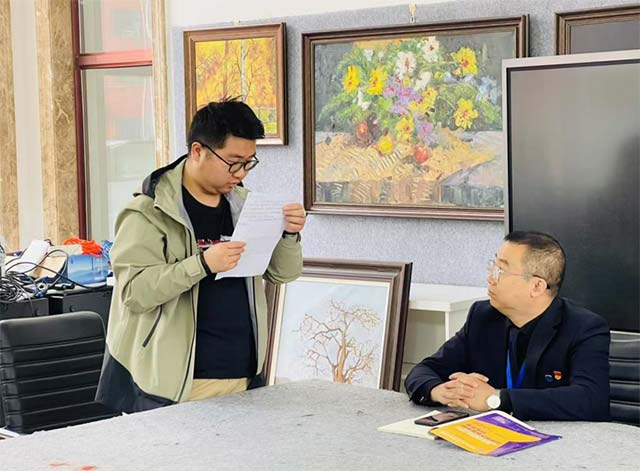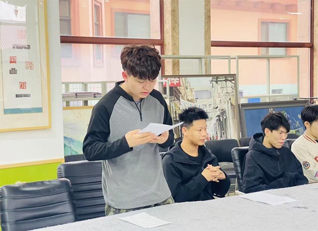 作为团员,他主动学习党的理论,积极参加组织活动,努力向党员标准靠拢。他认为党员不仅是荣誉,更要在思想和行动上与党保持一致,用实际担当践行使命。学业上他同样刻苦,专业成绩名列前茅,常泡画室加练。他坚信扎实的专业能力是服务社会的基础,希望未来能为国家发展贡献力量。他的真诚分享激励了在场同学,大家相信这份追求与努力会让他走得更远。