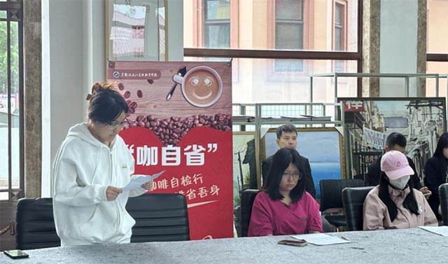 2025 年 5 月 24 日,黑龙江三江美术职业学院第五十二期 “咖自省” 活动在哈尔滨教学实习基地龙美书院一楼热烈展开。“咖自省”是我院非智力因素育人活动的重要一项,旨在引导学生正视自身问题,对自己原有的价值观、世界观、人生观进行深入剖析从而实现自我成长与提升,进一步营造积极向上的学习氛围。