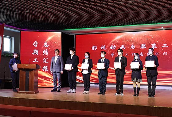 在过去的一学年,影视动画与服装系师生团结一致,努力拼搏,各项工作扎实、细致、优质、高效,取得了突出的成绩。李彤主任代表学院宣读了表彰决定:服装专业循环班获得“先进集体”称号;刘庆智、郭鑫遥等6名同学获得“三好学生”称号;王佳伟、王硕等7名同学获得“优秀学生干部”称号。