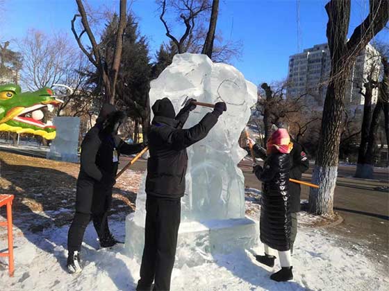 为了参加这次冰雕比赛,学院领导高度重视,购置了新的冰雕工具、油锯,用大巴车早晚接送,解决了师生们的后勤保障问题,让师生们无后顾之忧,全力投入到比赛中去。师生们不辞辛苦,连中午午休都两班倒,争分夺秒的完成作品。他们的辛苦没有白费,取得的成绩是大家共同努力的结果。