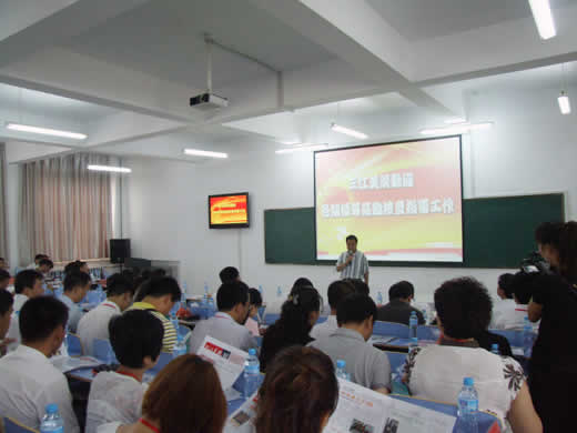 2010年8月4日上午11时,参加全省团干部“双岗双责”活动佳木斯推进会议的全体人员230人,在省团委书记张恩亮的率领下、在佳木斯市委常委韩库、佳木斯市团委书记王献宇的陪同下,驱车来到了黑龙江三江美术职业学院,就学院团委工作和“双岗双责”活动进行参观指导。