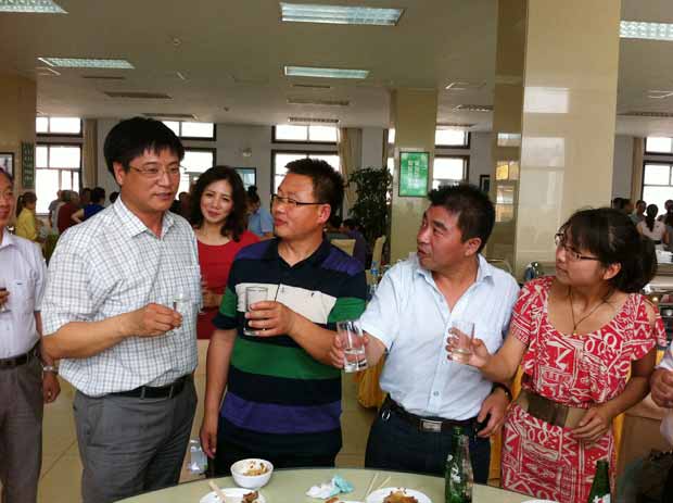 省政协副主席、民盟省委主委赵雨森等领导在庆祝酒会上与三江美院教师王美林、张哲、姜岩、王俊波、姚宝山及学生代表亲切交谈。他勉励师生要勤奋学习,努力工作,为建设美丽富饶的黑龙江做出贡献。