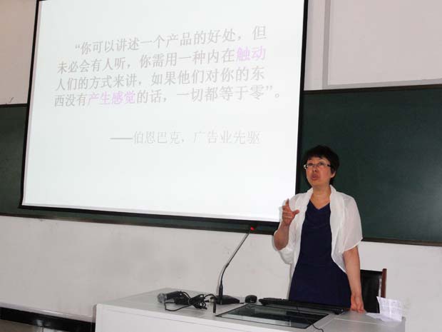 余雁教授在阐述广告创意与思维理论的同时,旁征博引例举了大量鲜明、生动、深刻的案例进行说明,把同学们的思路引入了一种境界,使同学们感到眼界大开,耳目一新。同时她告诫同学们要注重设计者素质与想象力的培养,不断提高创造力、观察力,不断积累和思考,最终形成自己的能力,为同学们在广告创意与思维的学习上指明了方向。