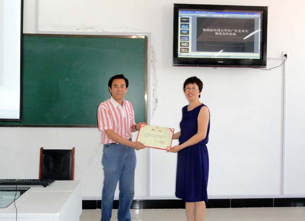讲座结束后,黑龙江三江美术职业学院院长王英海向余雁教授颁发了聘书,聘任余雁教授为三江美院特聘教授。余雁教授表示:今后我就是三江美院的人,只要学院有事,我会尽力做好,随叫随到,为培养三江美院的设计人才贡献我的力量。
