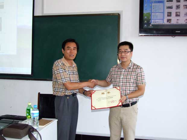 讲座后,王英海院长向许延军院长颁发了证书,聘任他为三江美院“特聘教授”。