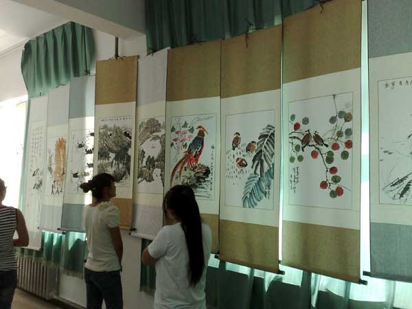 本次共展出白描、线描、写生、写意花鸟画、山水画作业118幅。面对成型的作业,参观的师生感到十分惊讶,对他们能在短时间里掌握了中国画的技法、达到入门的境界感到十分高兴。