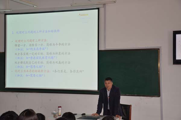 9月14日,哈尔滨工业大学建筑学院博士生导师邹广天教授首先进行了《可拓学与设计创新》的专题讲座。这是一个解决矛盾的的学科,他由浅入深地讲述了“可拓学”的产生与发展其涉及的领域,指出把可拓学引入设计领域,可以拓展设计思路,提高设计质量,达到创新之目的。他通过实际案例的讲解,给同学们带来了新的知识切入点,拓宽了同学们的视野,为同学们学习艺术设计开拓了一片新的天地,使同学们感到耳目一新。