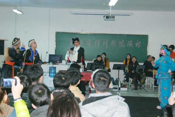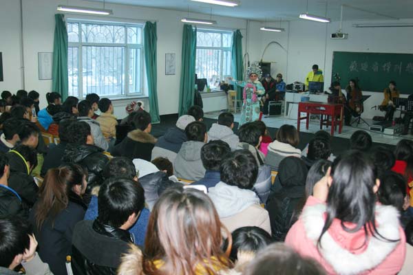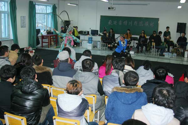 11月26日14时,我省“高雅艺术进校园活动”在我院哈尔滨校区展开,黑龙江省评剧艺术中心一行30余人来到1341班,为师生演出评剧,中心相关领导及我院师生共同观看了演出。