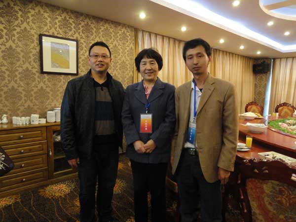 ▲ 教育部资深专家江小明教授与王俊波、马兆玉两位老师合影