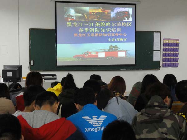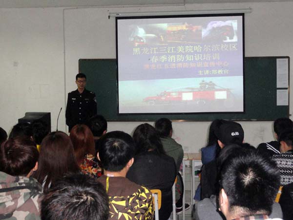 2014年5月15日下午15:00,黑龙江三江美术职业学院哈尔滨校区的师生们听取了来自黑龙江五进消防知识宣讲中心的郑确教官为我们精心准备的一节关于安全防火方面的知识讲座。