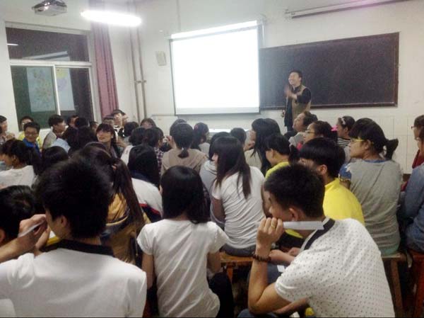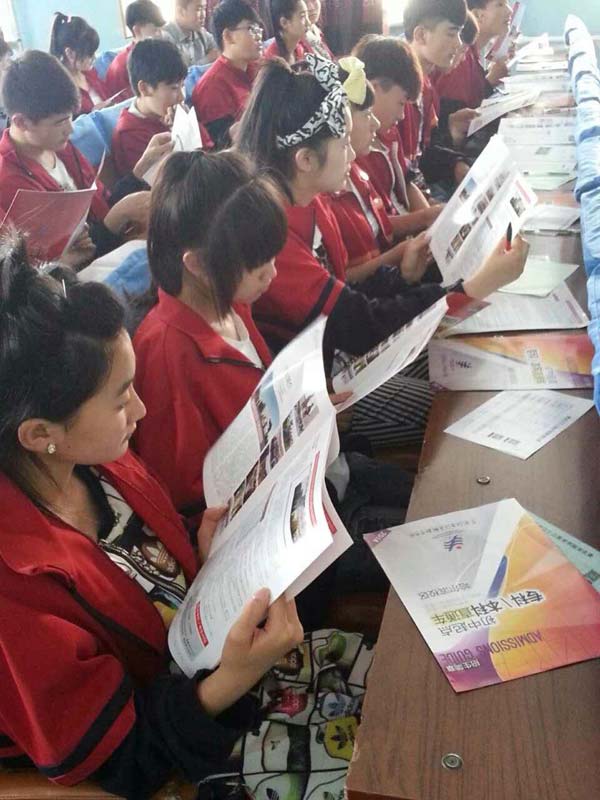 从5月中旬开始,学院院长王英海教授带领学院党委副书记范春林、骨干教师马艳辉、王明鉴、曾祥辉、王莹宝、石林等人分成三个小组,分别驱车数千公里,风尘仆仆、马不停蹄地奔波于市、县和乡镇中学之间。每到一处,他们都用最简洁的语言和形象生动的多媒体教具宣传国家的相关政策和学院的优势,解答考生关注的各种问题,在短短20多分钟的时间内把大量的有用信息传递给他们,使他们受益匪浅。每当到达一个新的市、县之前,马艳辉、曾祥辉等老师都要提前把讲座用的PPT课件重新整理、制作一遍,为的是尽量把当地由三江美院毕业生设计的标志性建筑和景观设计效果图等作品直接展示给广大考生。这种“接地气,举实例”的辅导使考生们眼前一亮,一下子就吸引住了他们的眼球,教室里不时爆发出一阵阵热烈的掌声。