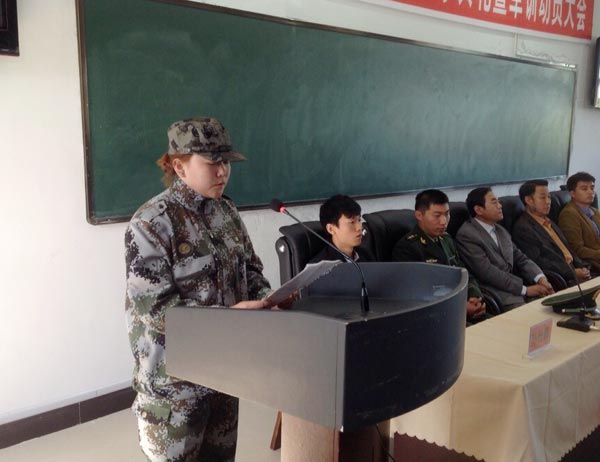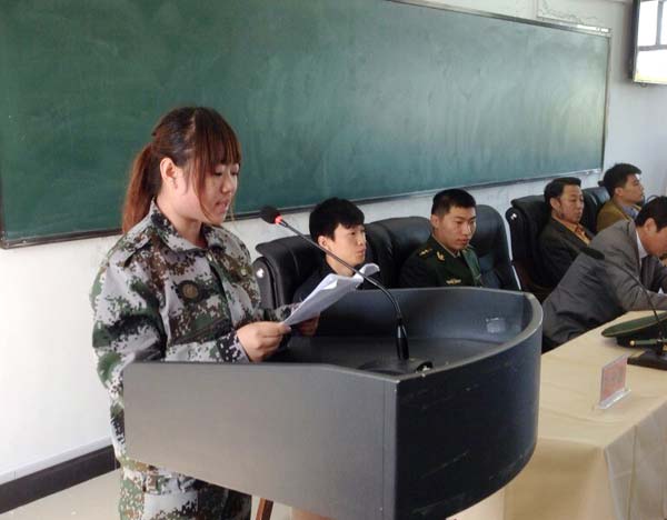 这次军训聘请的教官是武警佳木斯市消防支队郊区消防大队的官兵。中队长刘鈺鈐代表军训教官发言,他说:“军训对一个刚刚步入大学校园的大学生来说是非常重要的,它可以锻炼一个人的意志力;对于我们今后的学习和工作,乃至一生都有着极为重要的影响。我们之间的年龄相差不多,都有着共同的爱好,相信我们一定会有良好的沟通,通过我们大家的共同努力,一定会圆满完成这次军训任务。”