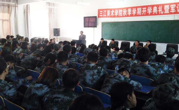 黑龙江三江美术职业学院佳木斯校区和哈尔滨校区新学期开学典礼暨2014级新生军训动员大会9月18日在佳木斯校区隆重举行,学院院长王英海、院长助理马鸿飞等分别在大会上致辞。