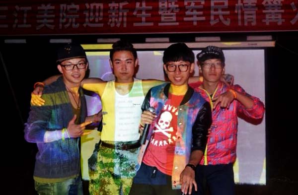 伴随着阵阵热烈的掌声,同学们准备已久的才艺表演开始了。女生优美宛转的歌声让大家如痴如醉;跳舞者身着鲜艳靓丽的服装,踏着轻盈的步伐,旋转、跳跃,赢来阵阵喝彩。男生也不甘示弱,他们同样多才多艺,吉它弹唱,精彩动人;一曲完毕,大家直呼“再来一个”。为了使节目更加丰富多彩,三江美院2013级环境艺术设计系的学长还为同学们表演了三句半《歌颂美院》,他们诙谐、幽默的表演让大家捧腹大笑。